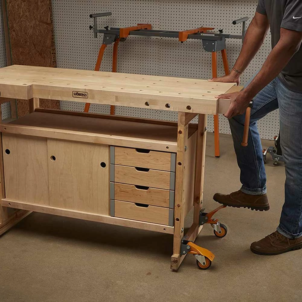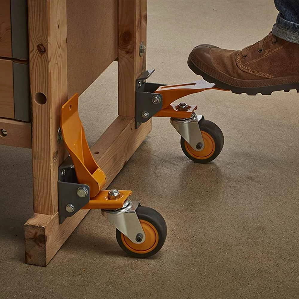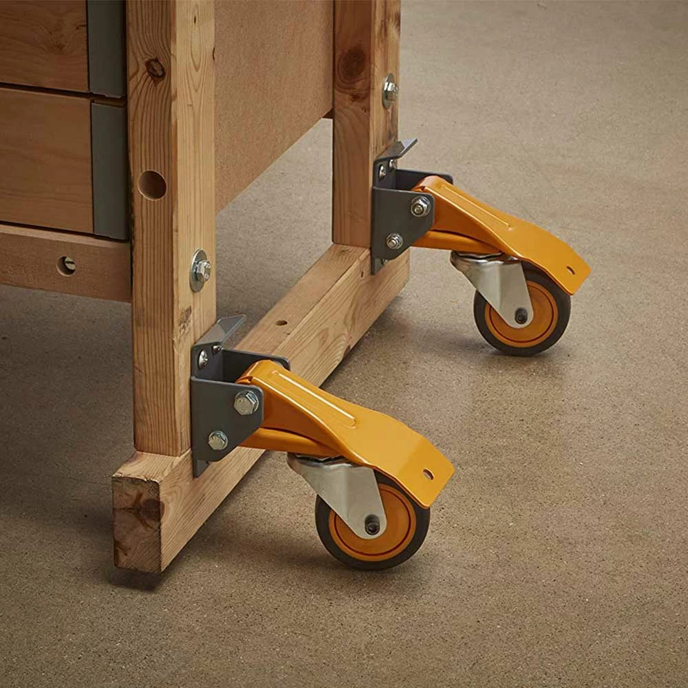 - Wheels swivel 360 degrees to easily move the bench around small workshops and into tight spaces