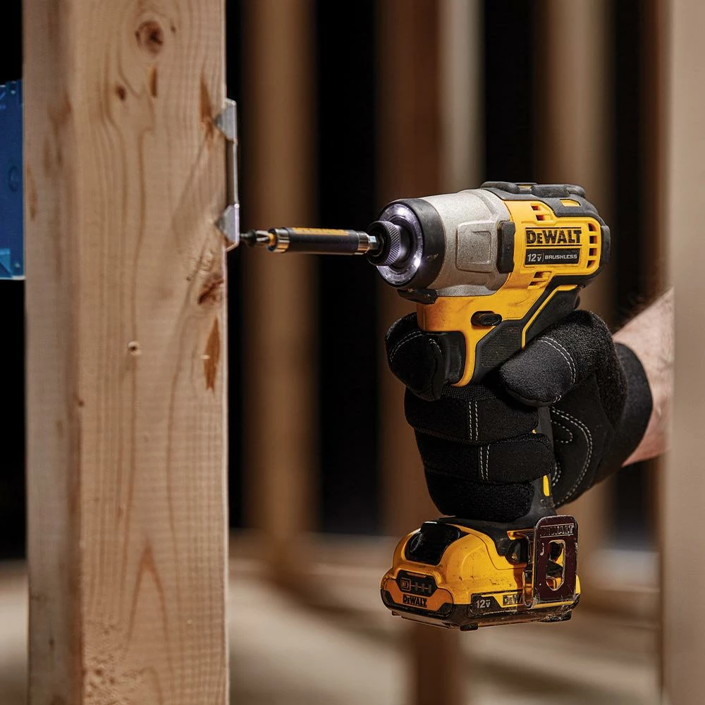 - DCF801 12V MAX Brushless 1/4-in impact driver has 52% more torque (when using DCB122 2 Ah battery vs DCF815 using DCB120 1.3 Ah battery) – battery sold separately