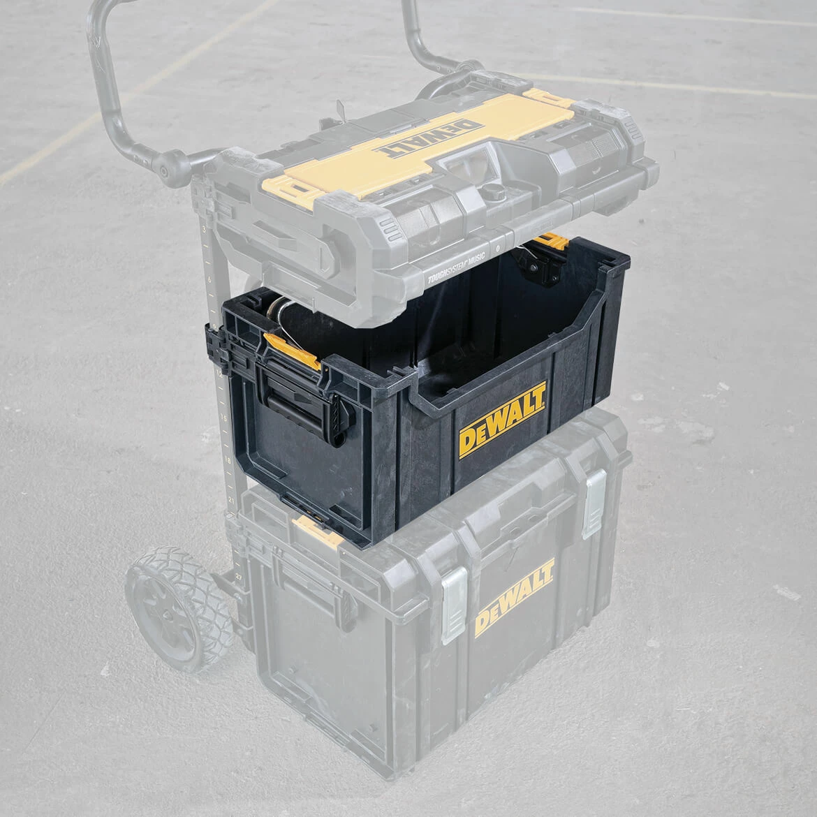 - Stacking latches allow stacking products one on top of the other and on other ToughSystem modules