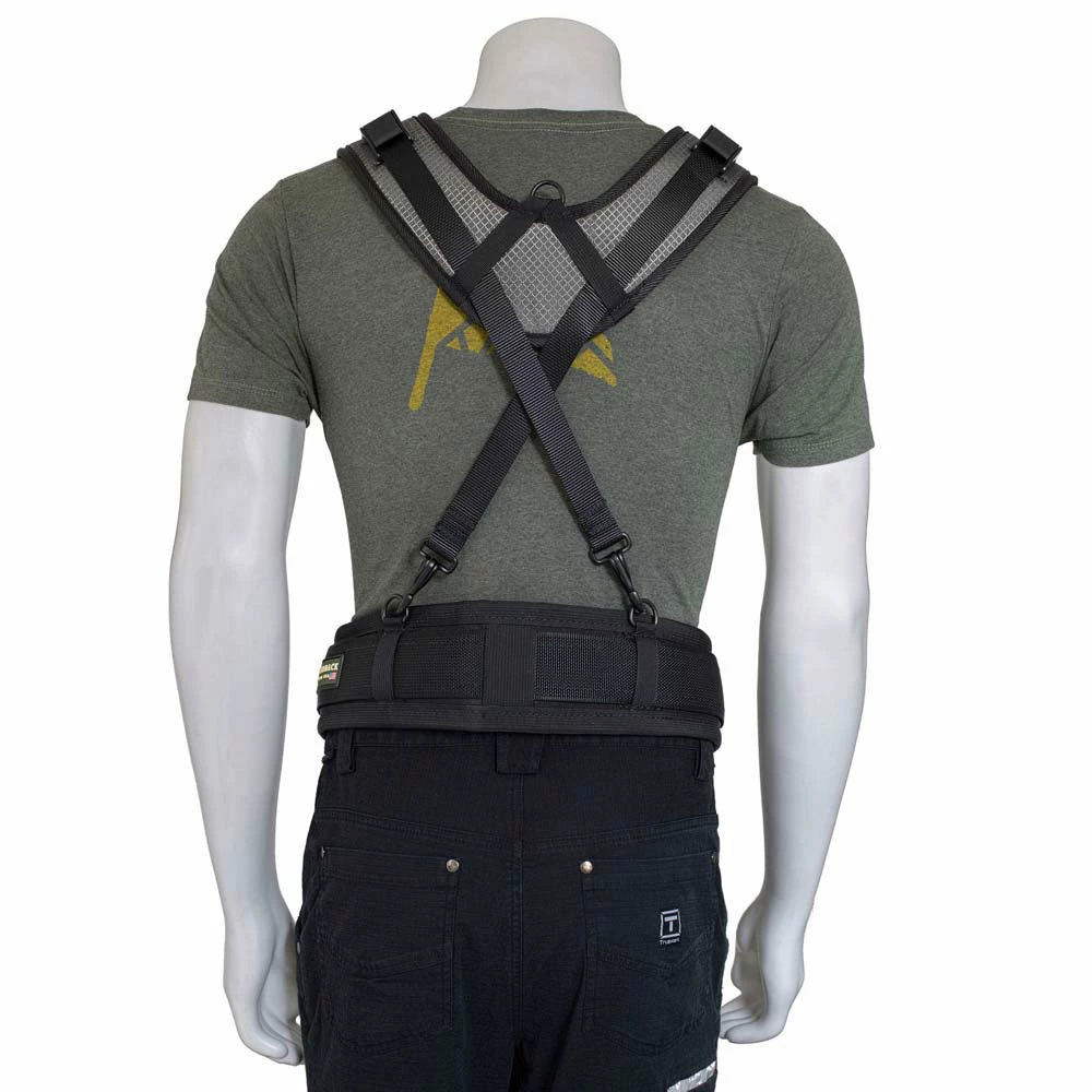 - Includes a D-ring on the back to hang your tool belt suspenders or your entire tool belt system when not in use.