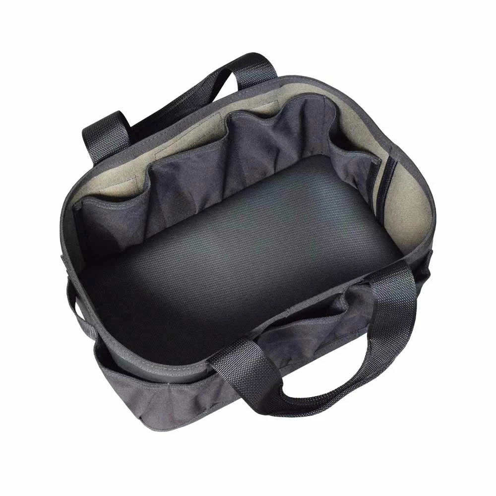 - The Baere tool tote is constructed of DiamondSkin with four 1000D internal and external pockets plus a pencil pocket with a tape clip.