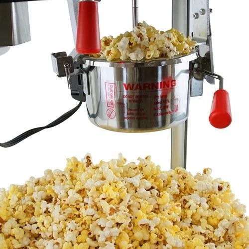 - 4 OUNCE STAINLESS STEEL KETTLE: Heats up quickly and evenly to maximize the amount of kernels popped. Free-moving lid allows the popcorn to flow easily. Kettle detaches for easy cleanup.