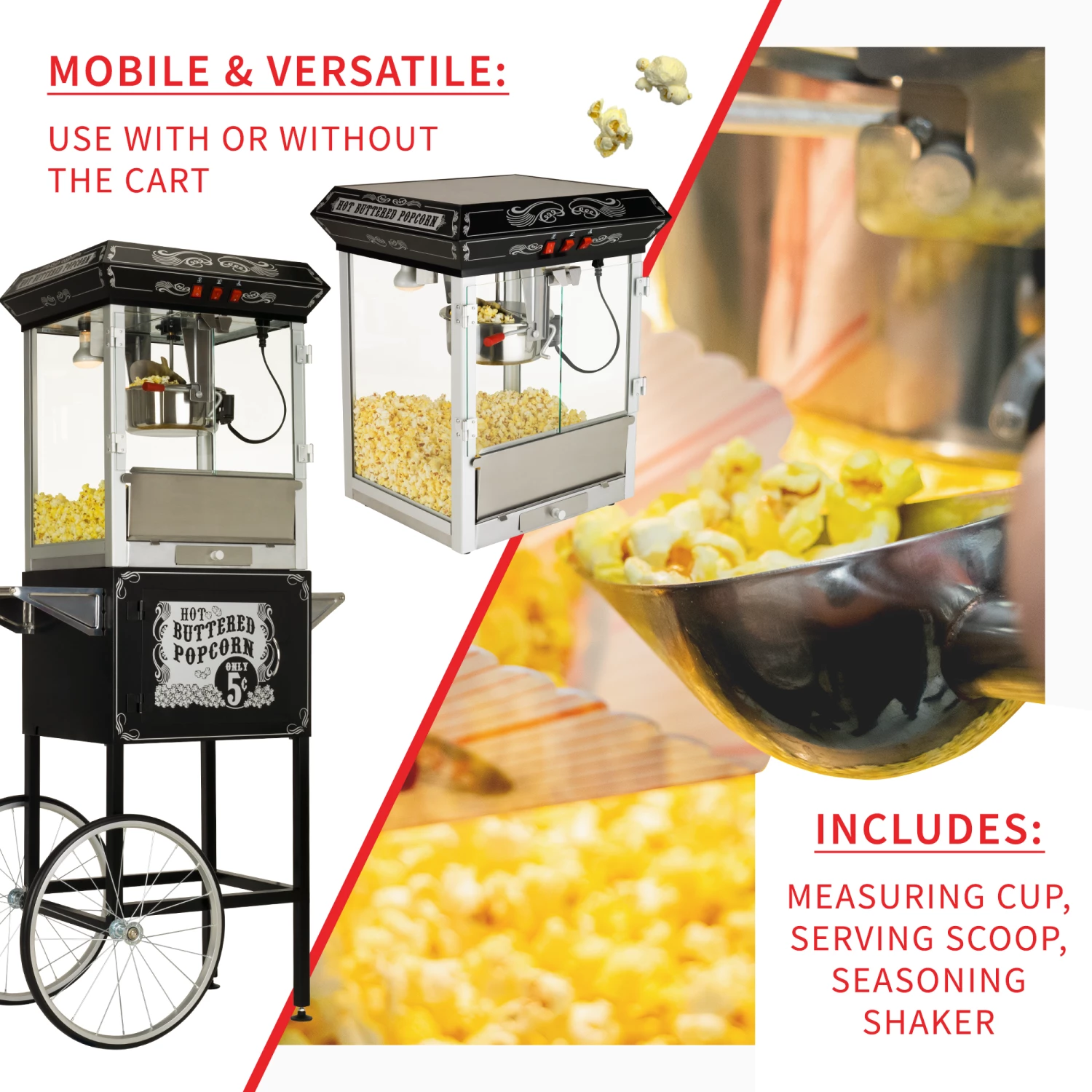 FunTime Carnival 8oz Popcorn Machine with Cart, Black/Silver (FT860CB)