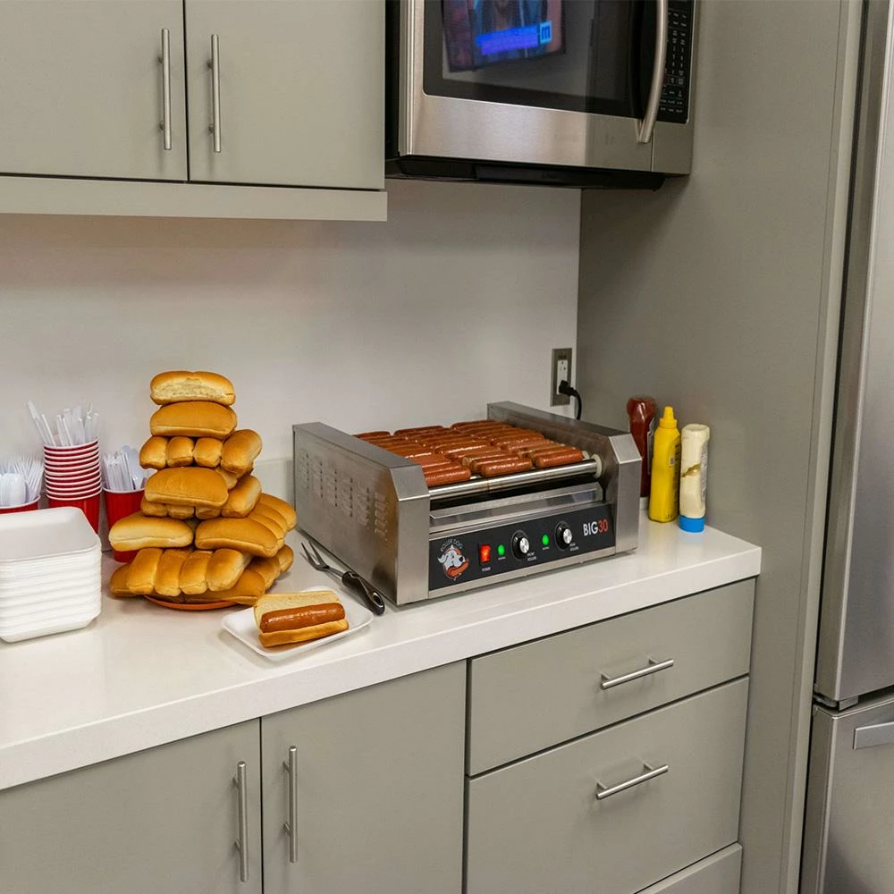 - Dual temperature controls: Cook hot dogs on the front rollers at a higher temperature while keeping hotdogs warm on the rear rollers.