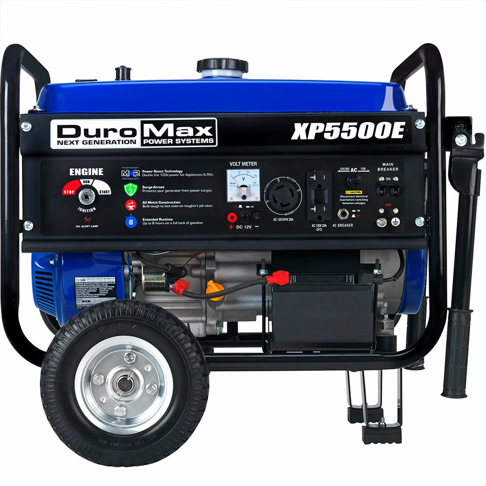 The DuroMax XP5500E is the most powerful generator in its class. With an available 5,500 peak watts in a small footprint, this generator can be used anywhere, for anything. This durable unit is perfect on the jobsite and is easily transported for tailgating or camping. With its powerful 224cc engine, you’ll be able to run your high-voltage appliances and heavy-duty power tools with ease.