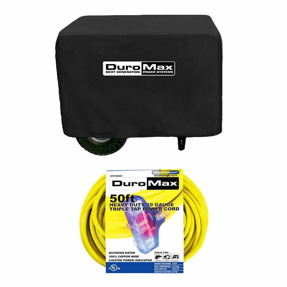 - Heavy Duty DuroMax Power Cord is Outdoor rated for safe use on the jobsite or in the yard.