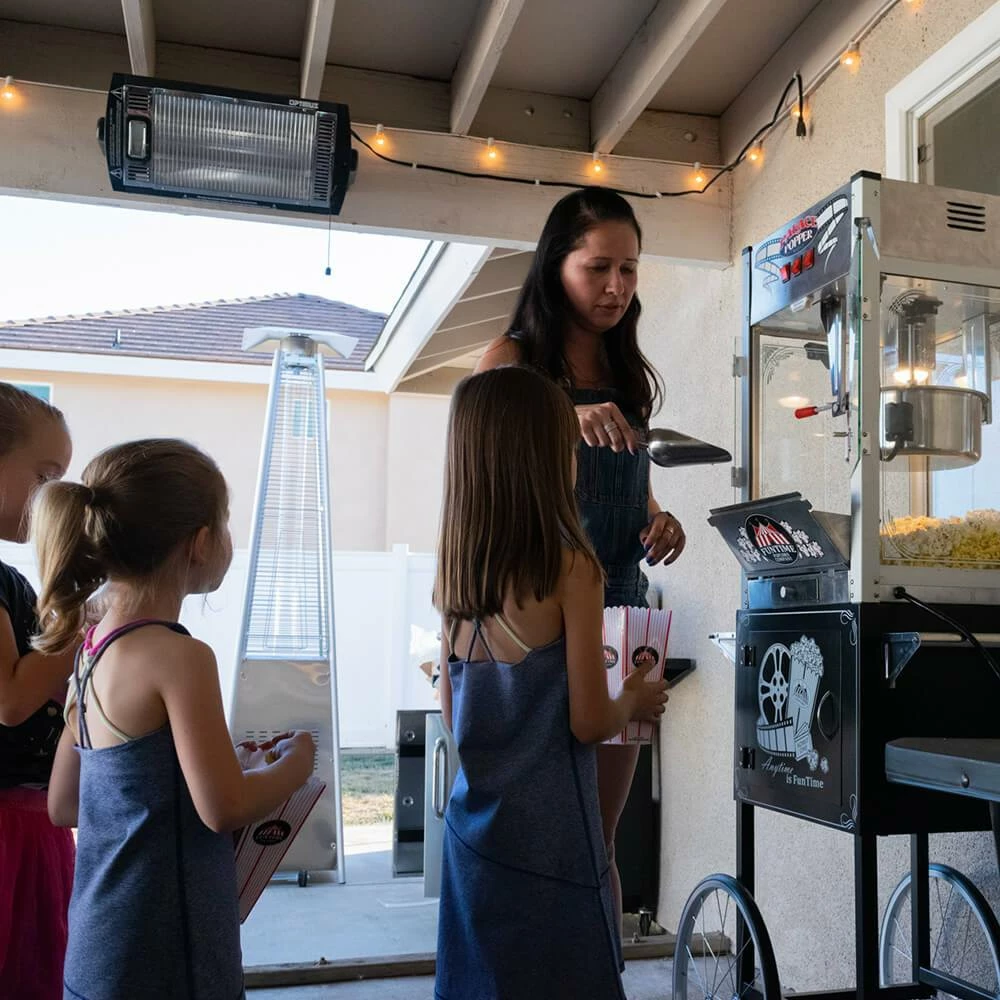 - 48 CUPS OF POPCORN: This popcorn machine yields about 3 gallons of popcorn. Perfect for birthday parties, movie nights, game days, backyard barbecues, school/ work events, and more!