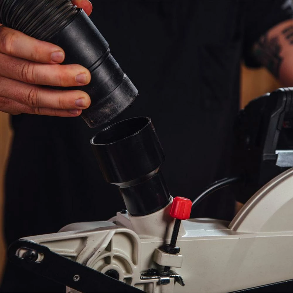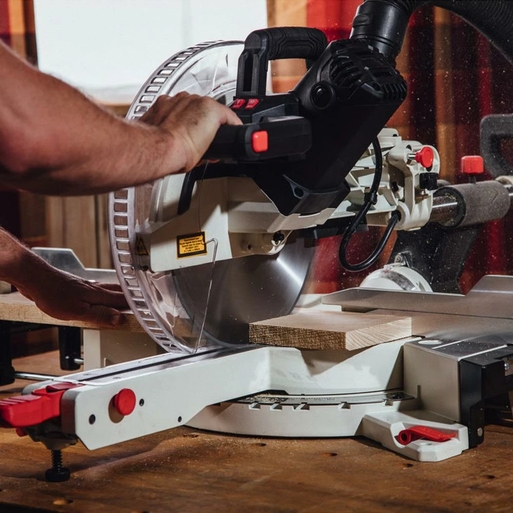 - Dual bevel capability with up front controls to maximize cutting of compound angles