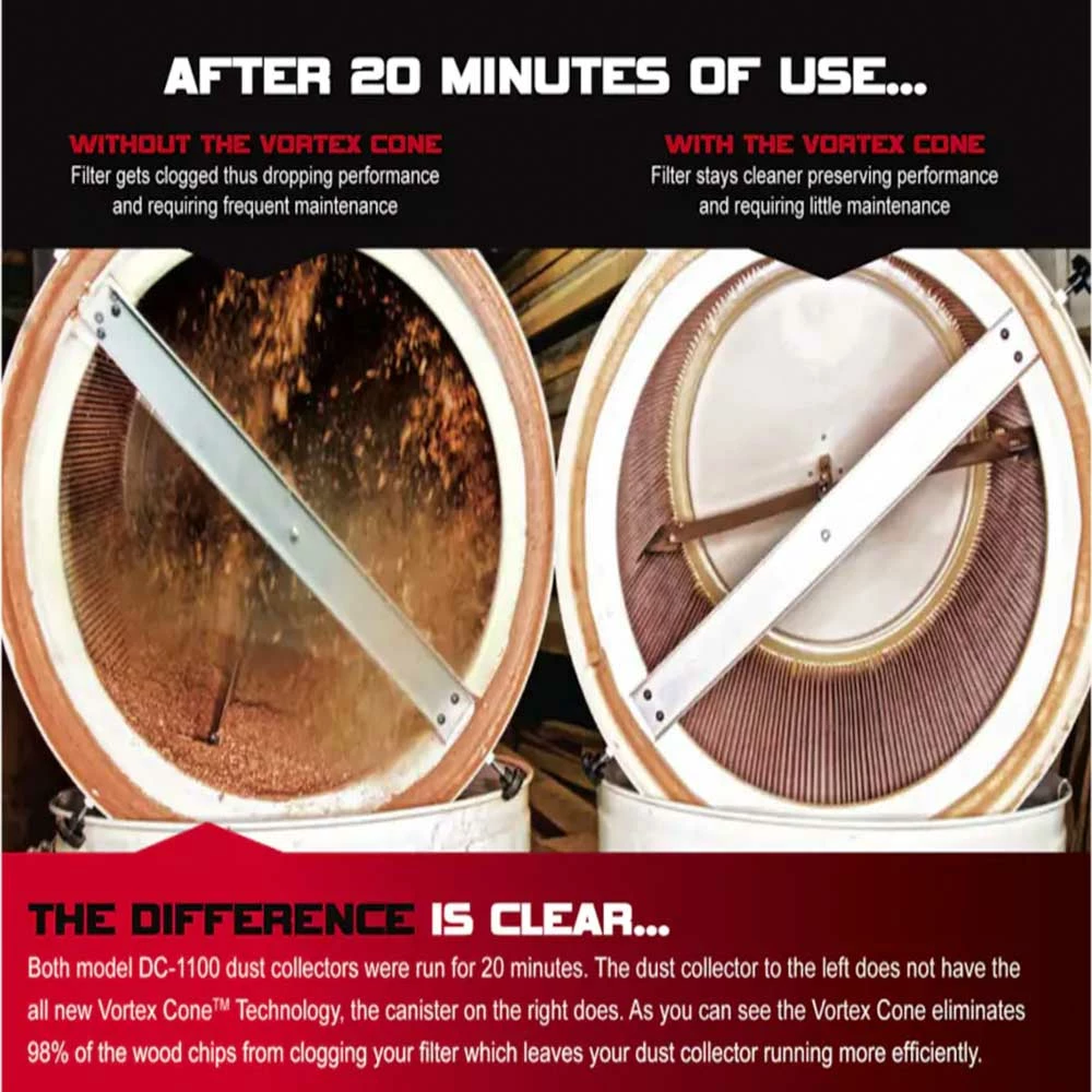 - Vortex Cone improves chip separation and collector bag packing efficiency