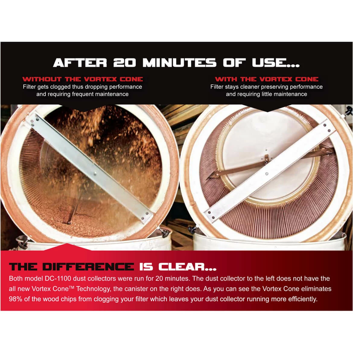 - Vortex Cone improves chip separation and collector bag packing efficiency