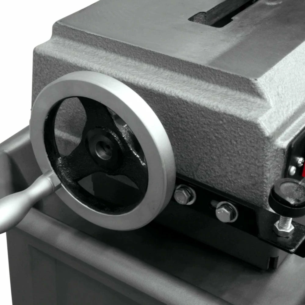 - Micro-adjustable tool-less material stop for accurate set-up and repeatability