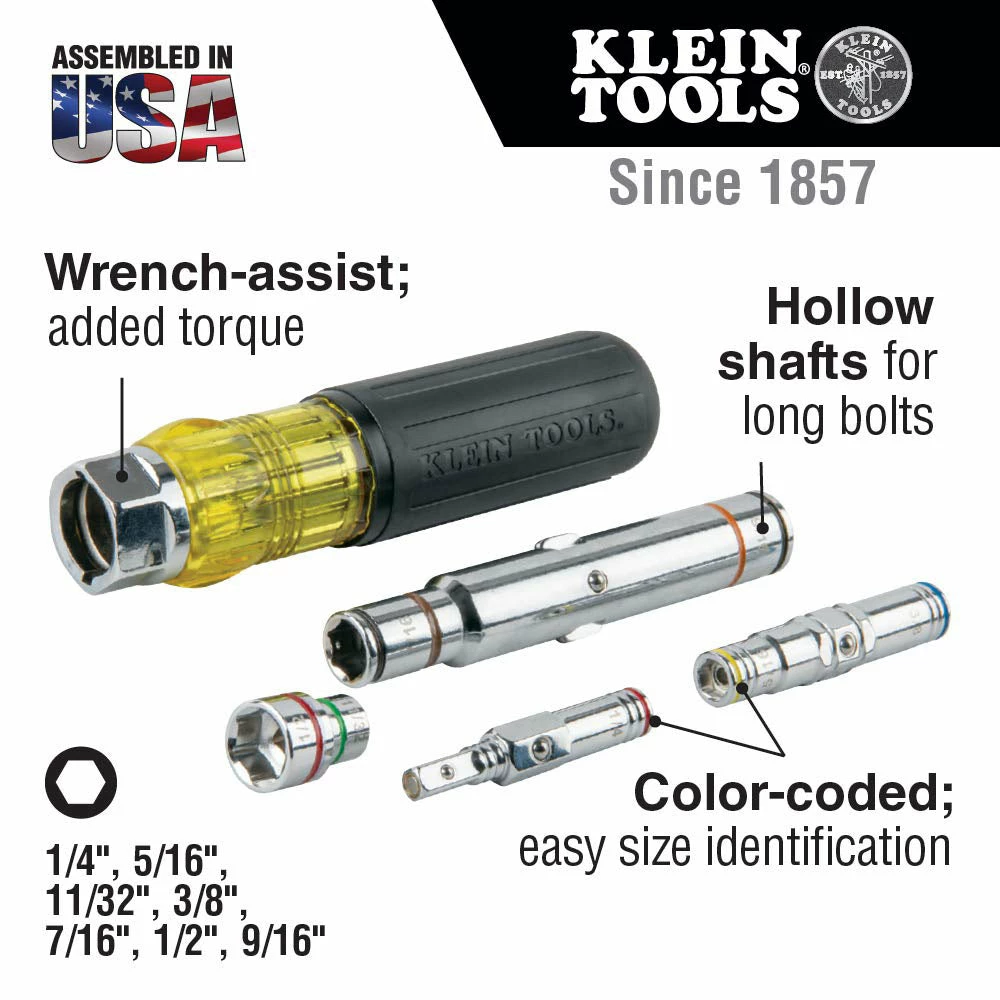 - Hollow shafts (1/4-Inch, 5/16-Inch, 3/8-Inch, 7/16-Inch, 9/16-Inch) for driving nuts deep onto bolts or threaded rod