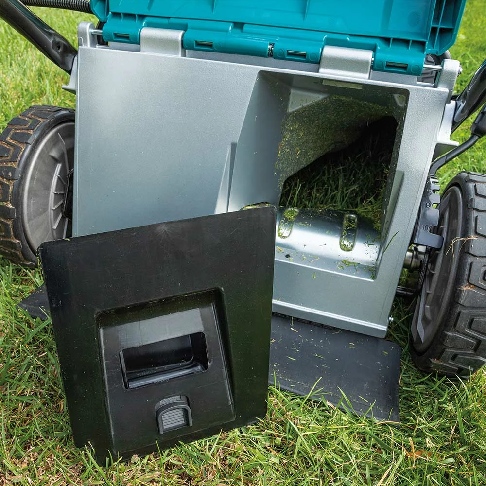 - 3-in-1 design allows for mulching, bagging, or rear discharge