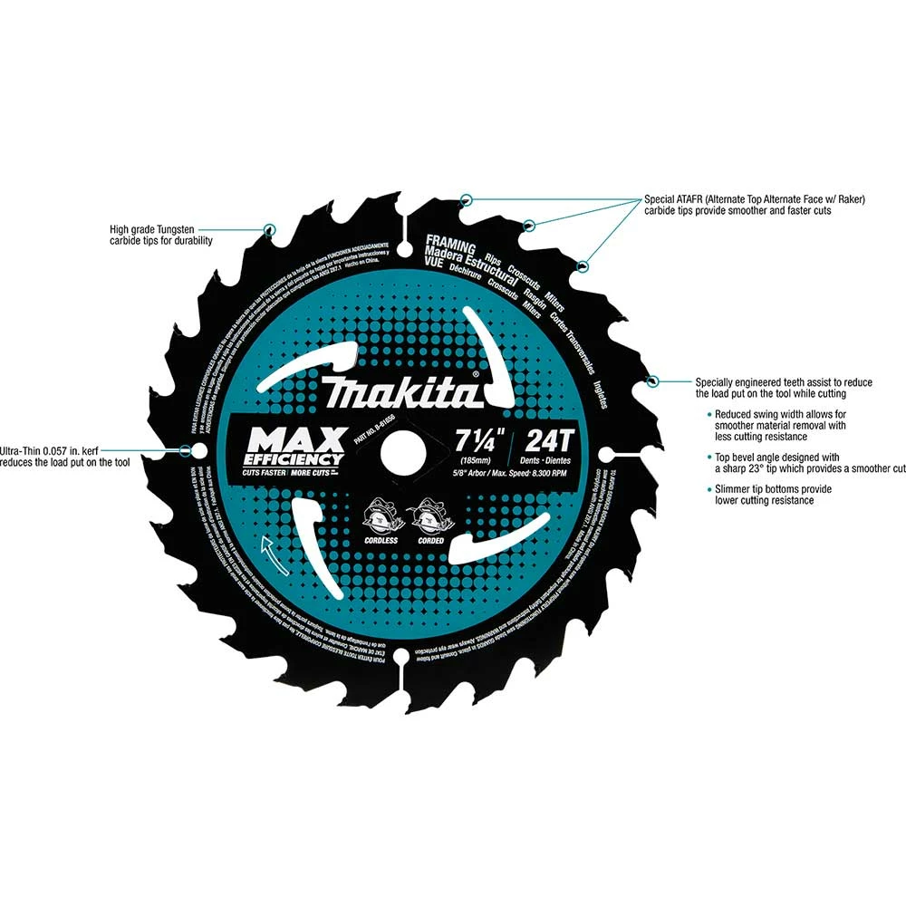 - Ultra-Thin 0.057″ kerf reduces the load put on the tool