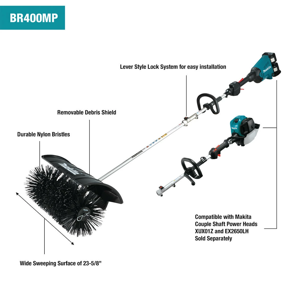 - For use with Makita couple shaft power heads