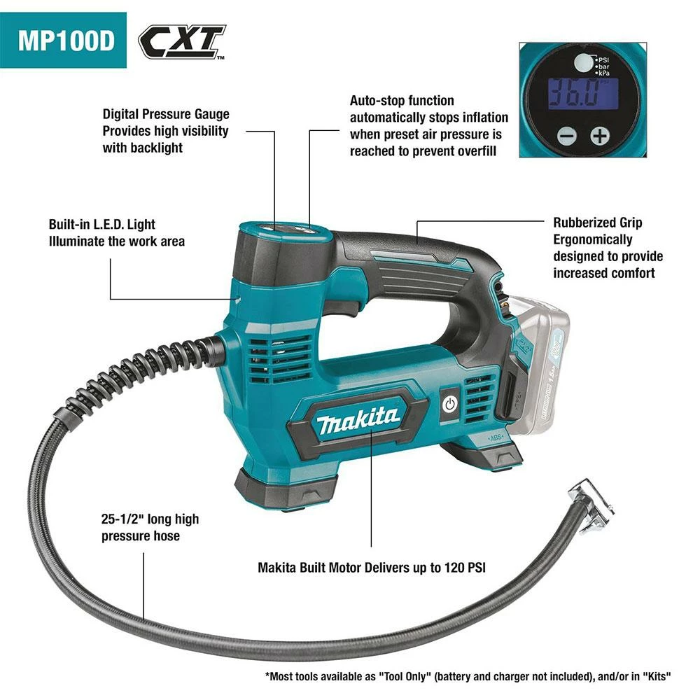 - Makita-built motor delivers up to 120 PSI capability