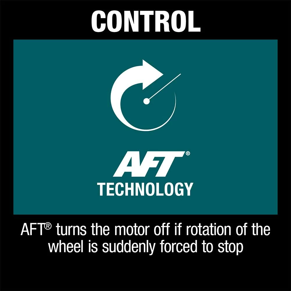 - Active Feedback-sensing Technology (AFT) turns the motor off if the rotation of the wheel is suddenly forced to stop