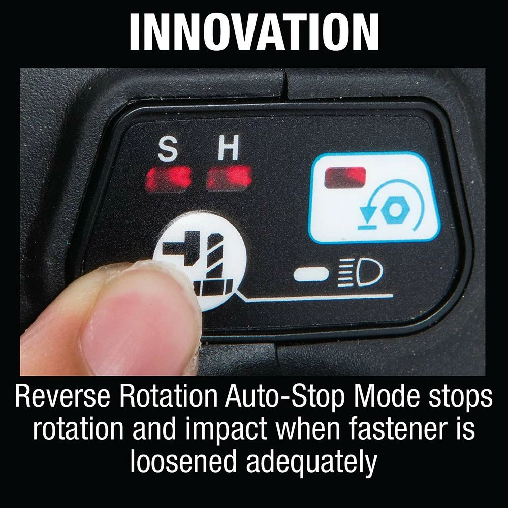 - Reverse Rotation Auto-Stop Mode stops rotation and impact when fastener is loosened adequately