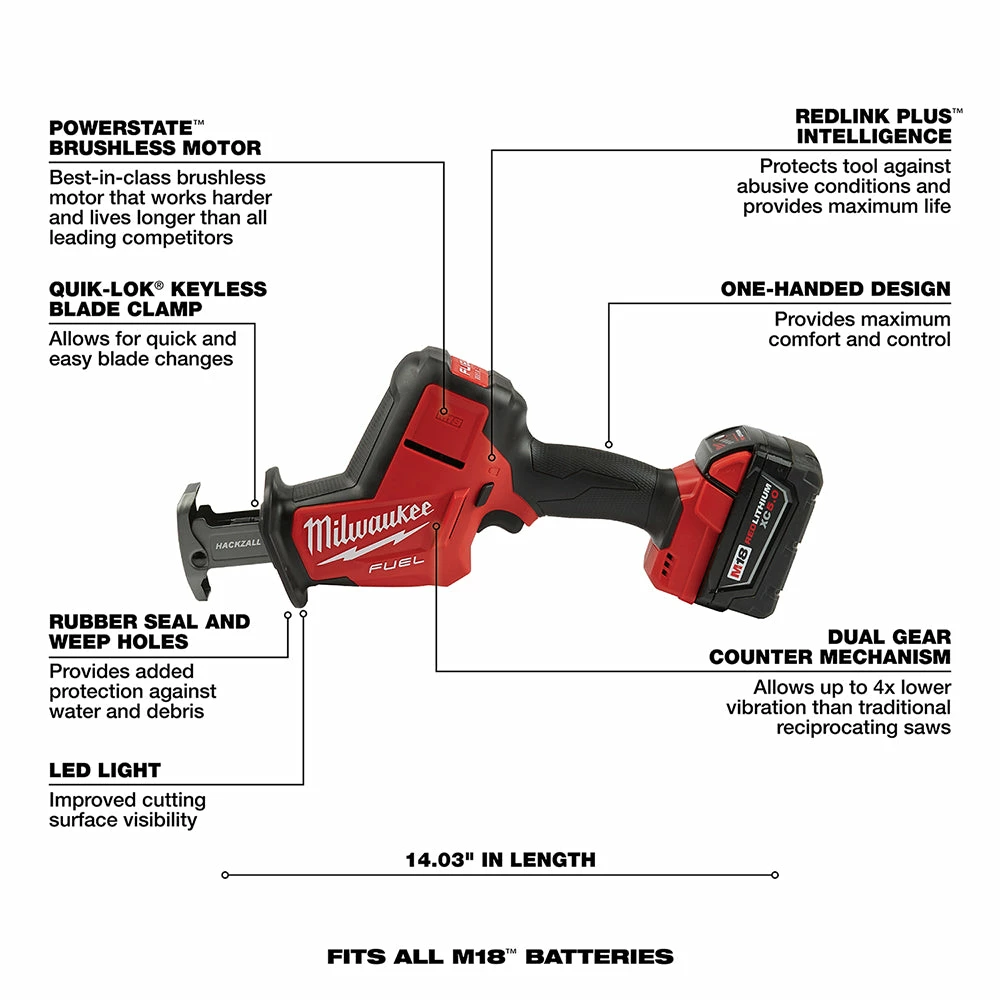 - REDLINK PLUS intelligence and POWERSTATE Brushless Motor combine to provide up to 3x longer tool life than competitive one-handed recips
