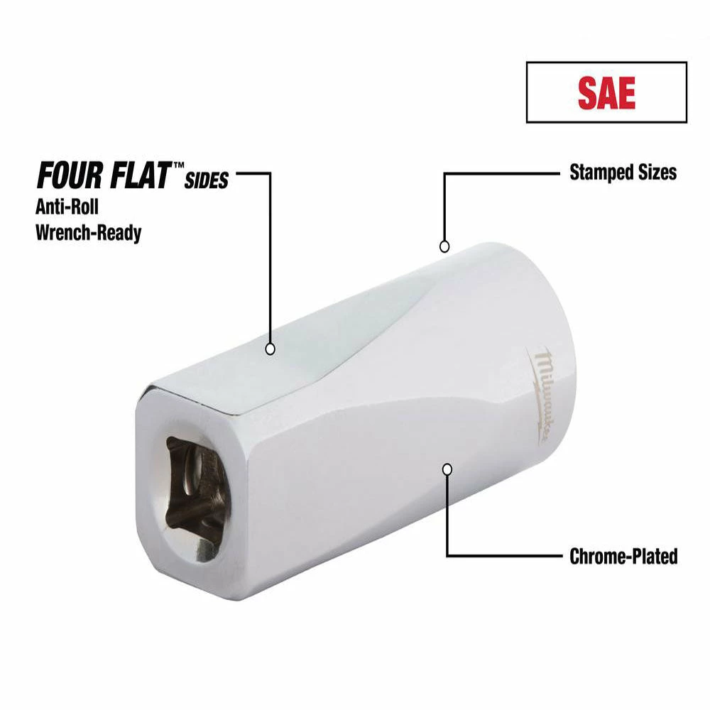 - 4 flat sides on socket deter rolling