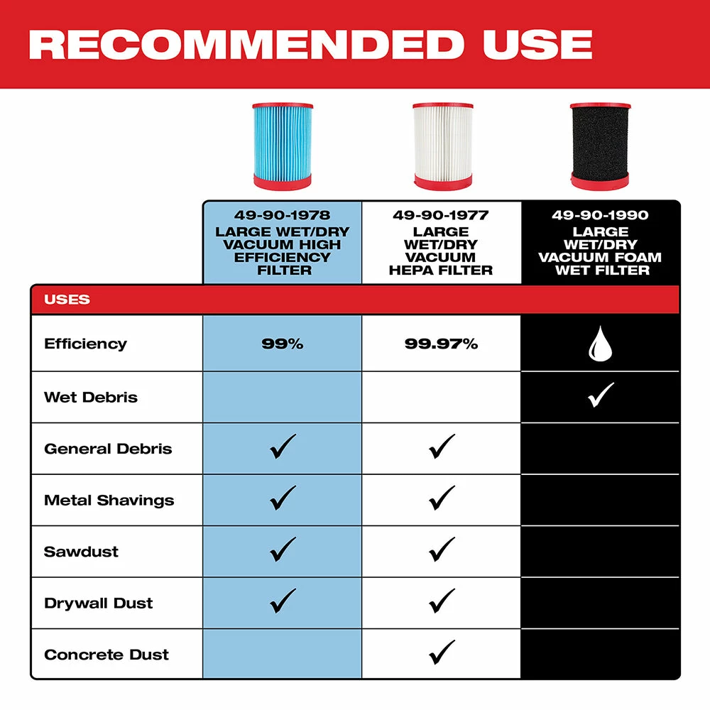 - Designed for use with Milwaukee 2 Gallon Wet/Dry Vacuum (0880-20), M12 FUEL Wet/Dry Vacuum (0960-20), and M18 FUEL PACKOUT Vacuum (0970-20).