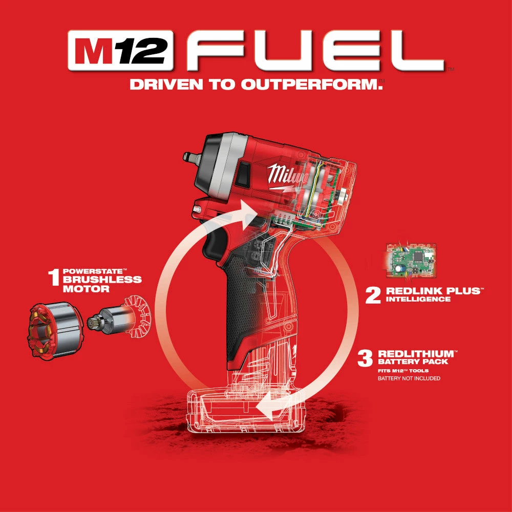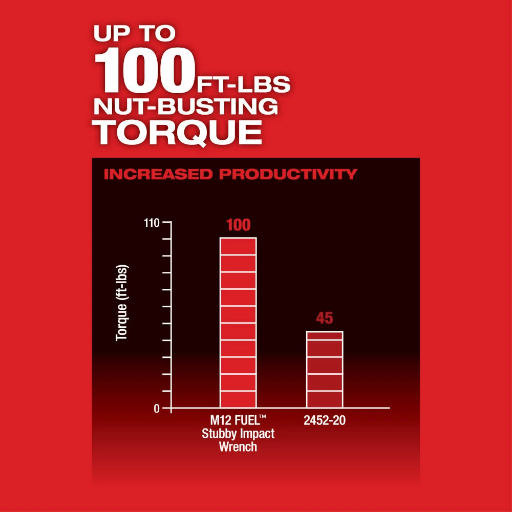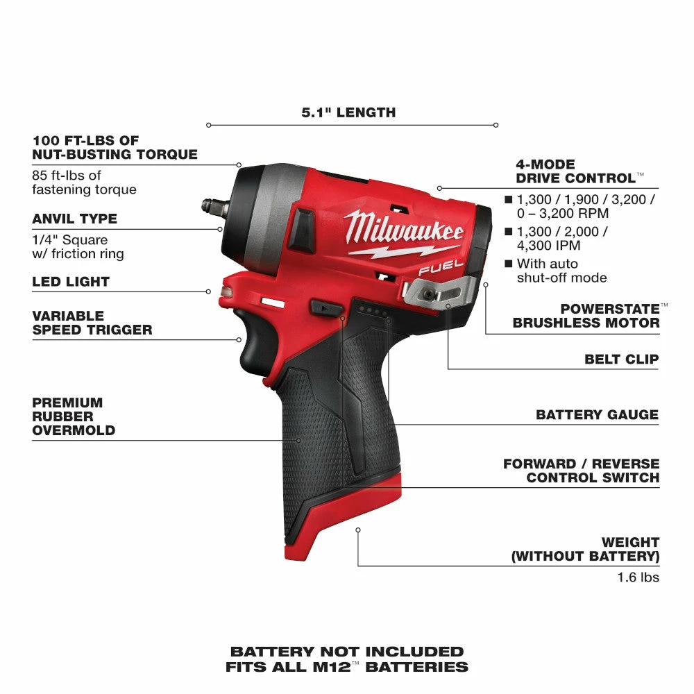 - Milwaukee M12 12-Volt FUEL 1/4-Inch Stubby Impact Wrench (Bare Tool) – 2552-20