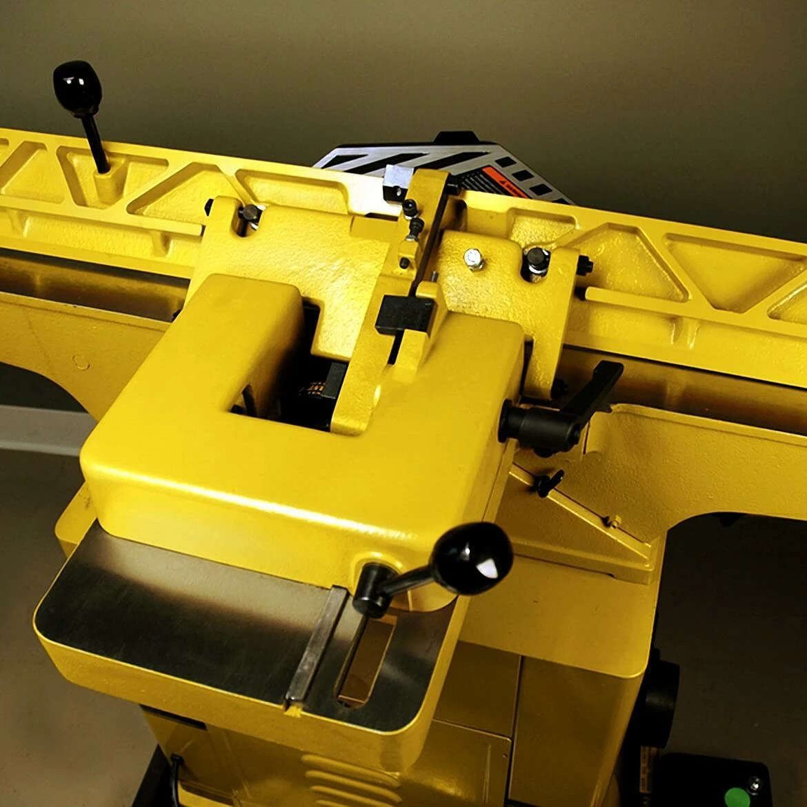 - 6-inch jointer with a 66- by 7-1/4-inch table surface equipped with quick-set knives