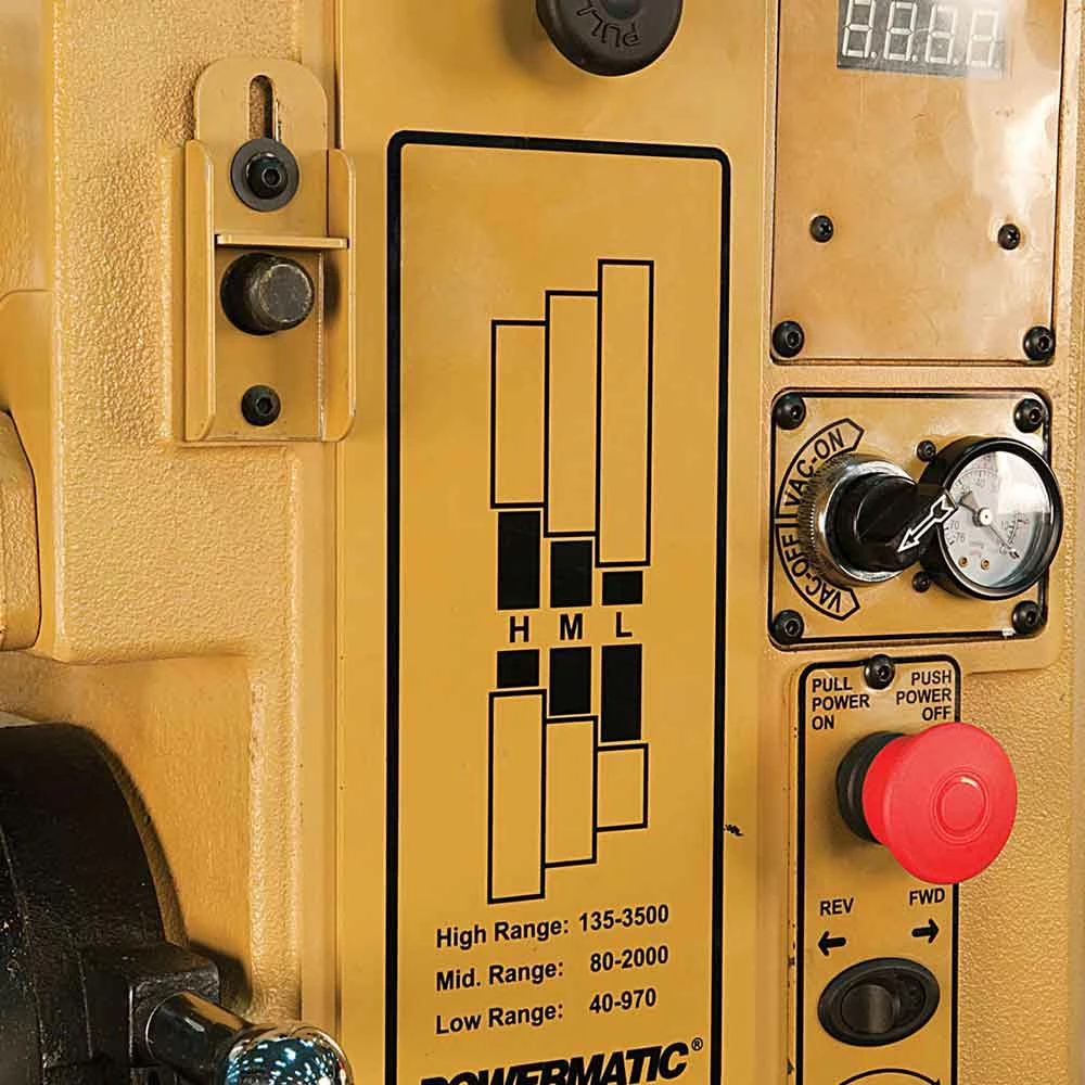 - Sliding headstock with electronic variable speed and digital RPM readout for accurate speed adjustments