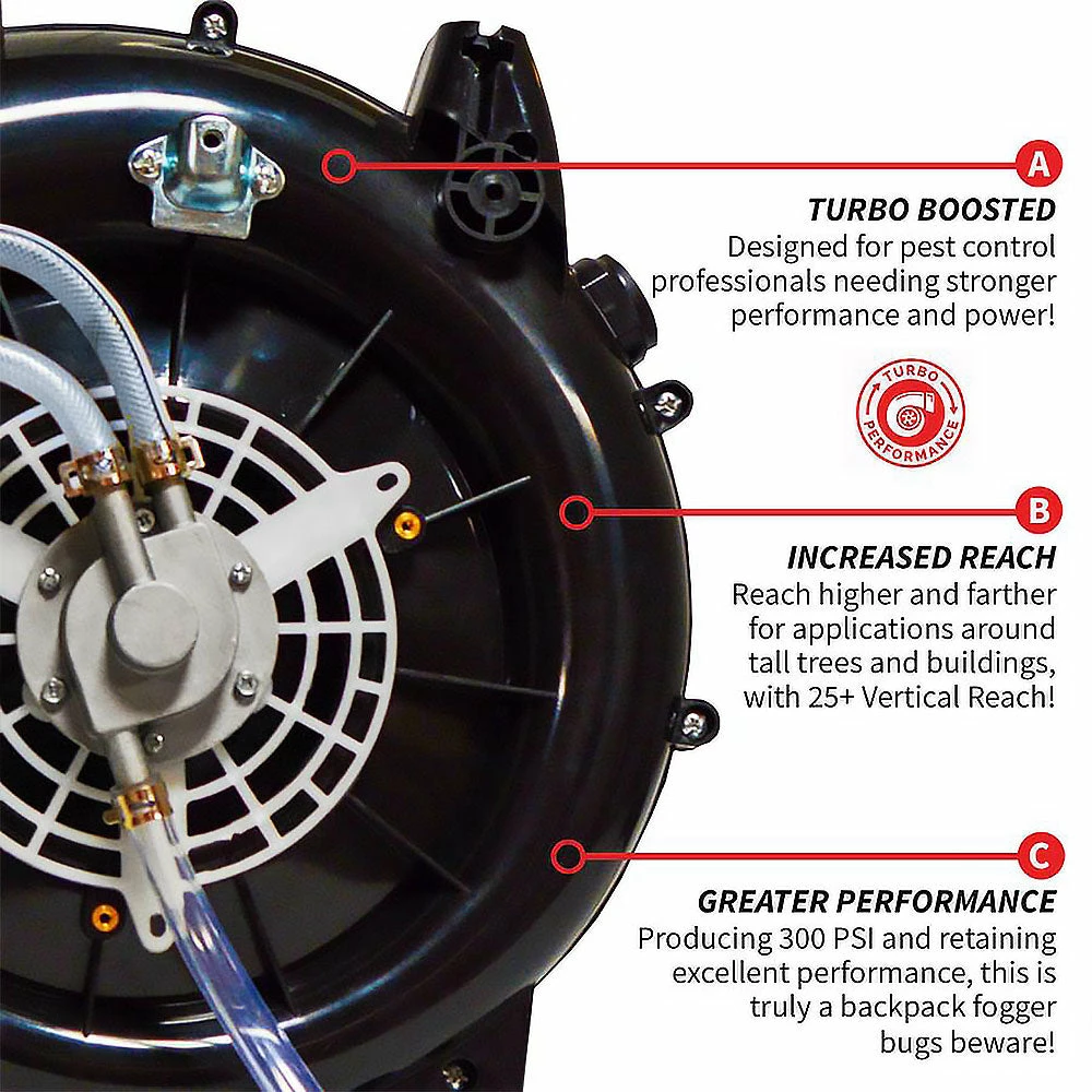 - Works with liquid and dust pesticides
