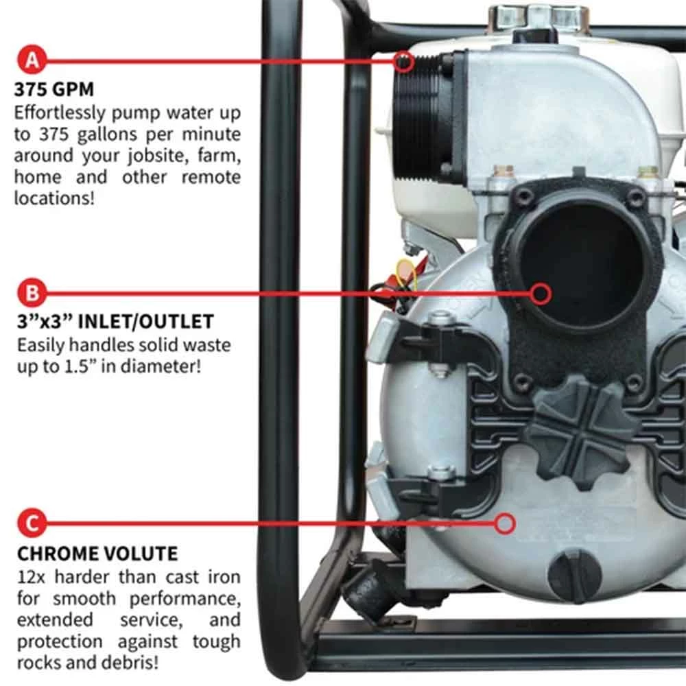 - 8 HP 3″ Industrial Duty Trash Water Pump