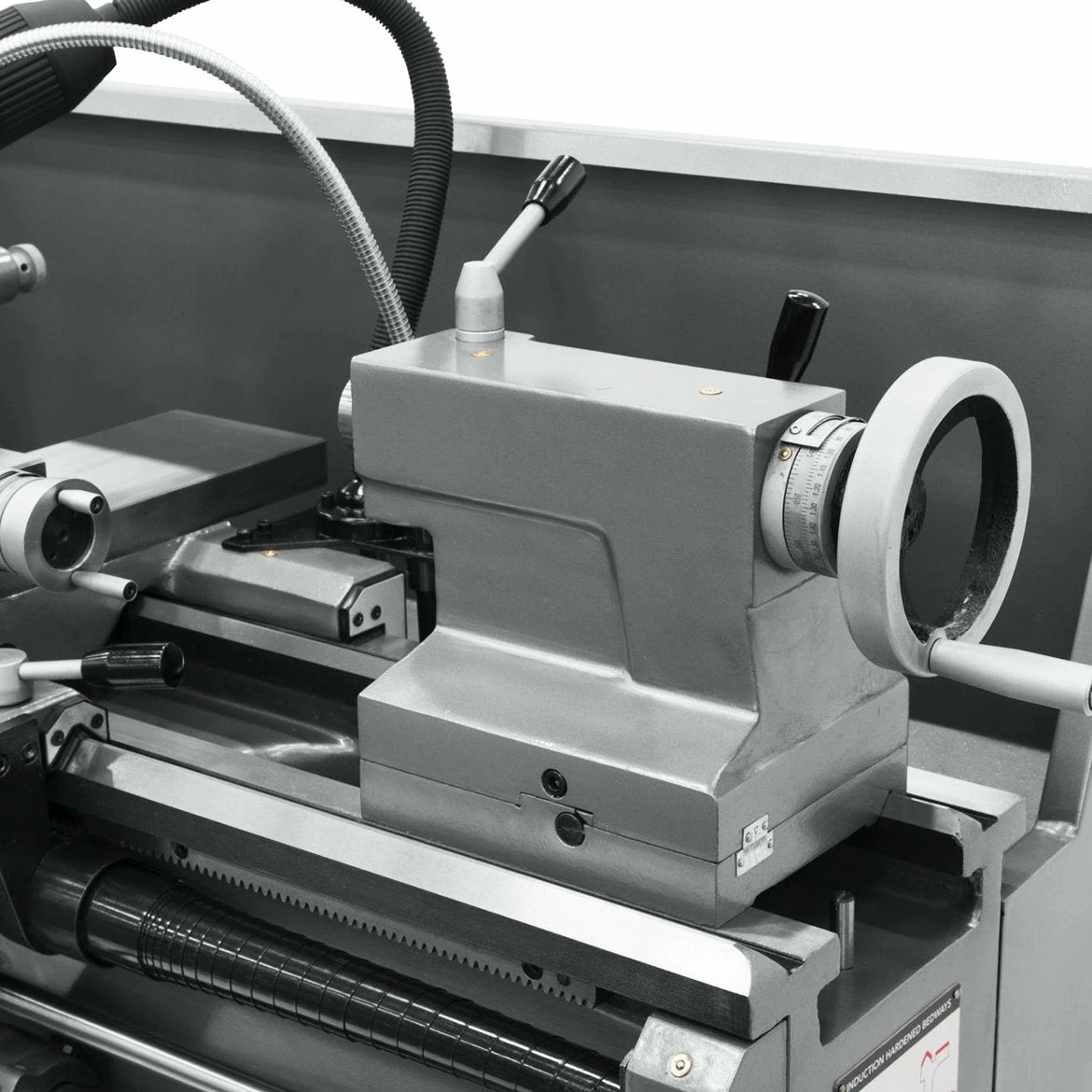 - Tailstock may be offset for turning tapers and includes an inch-metric graduated quill
