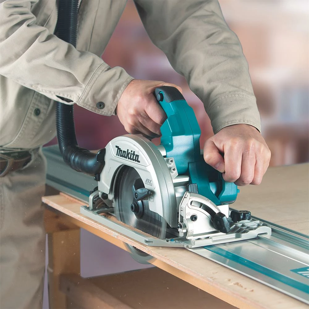 - Convenient guide rail compatible saw base interacts with optional guide rails to provide perfect, dead-on straight or bevel cutting without the need for an adapter