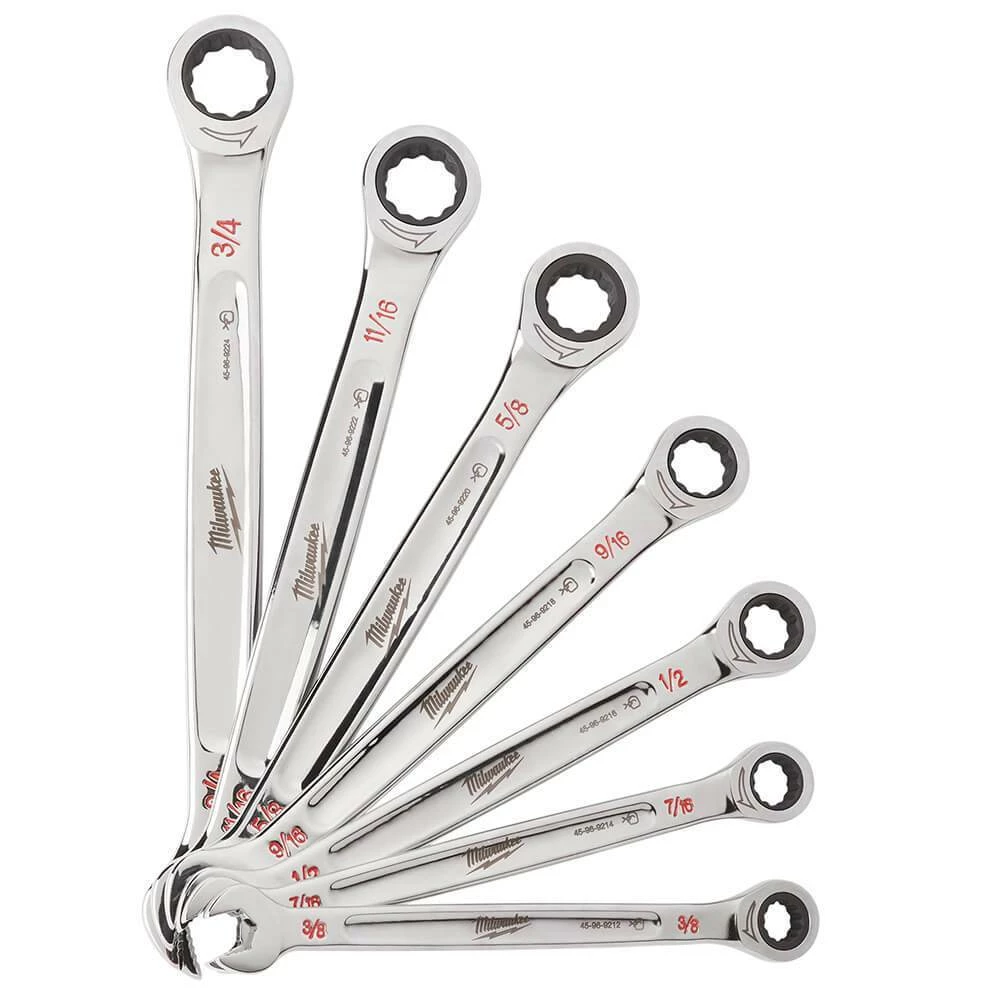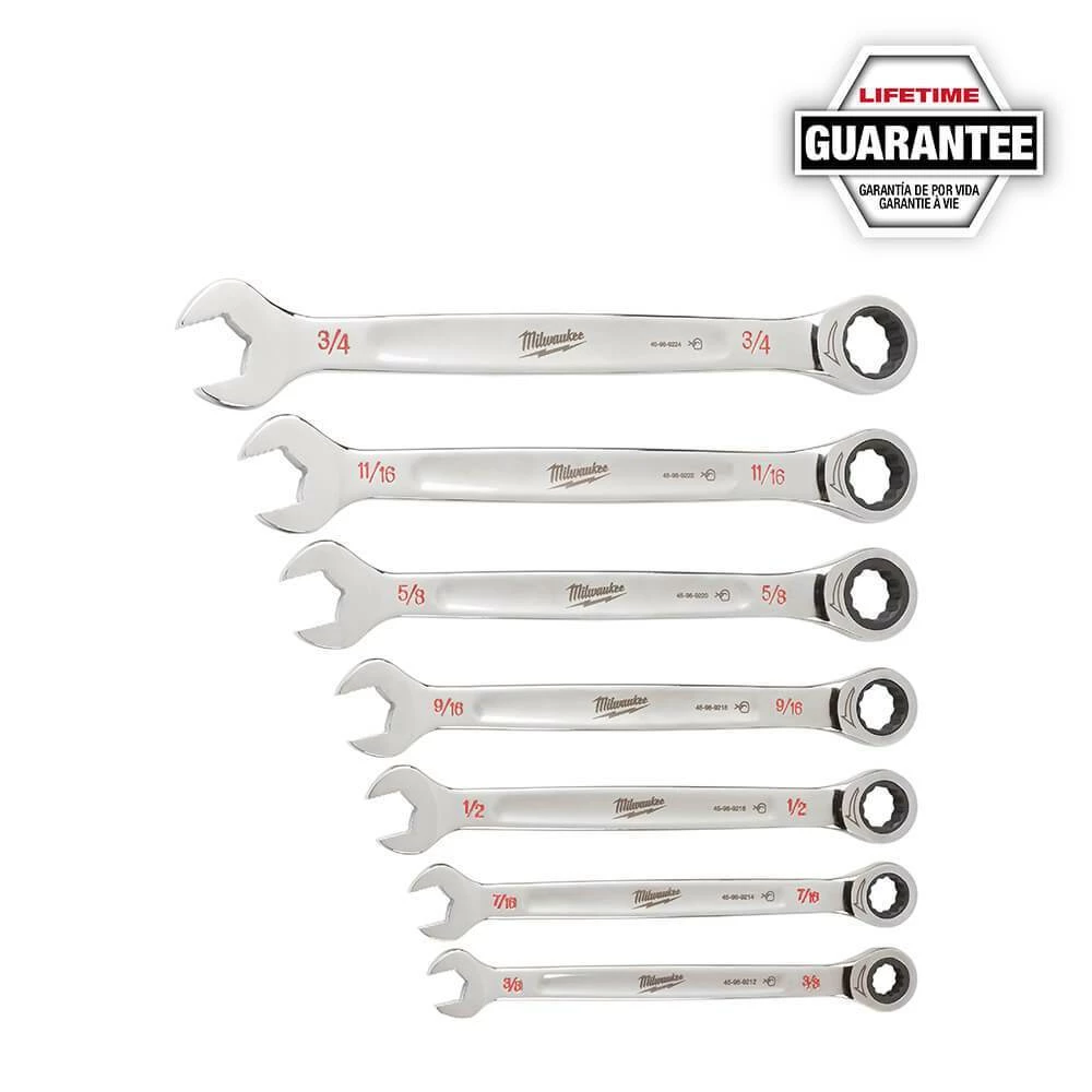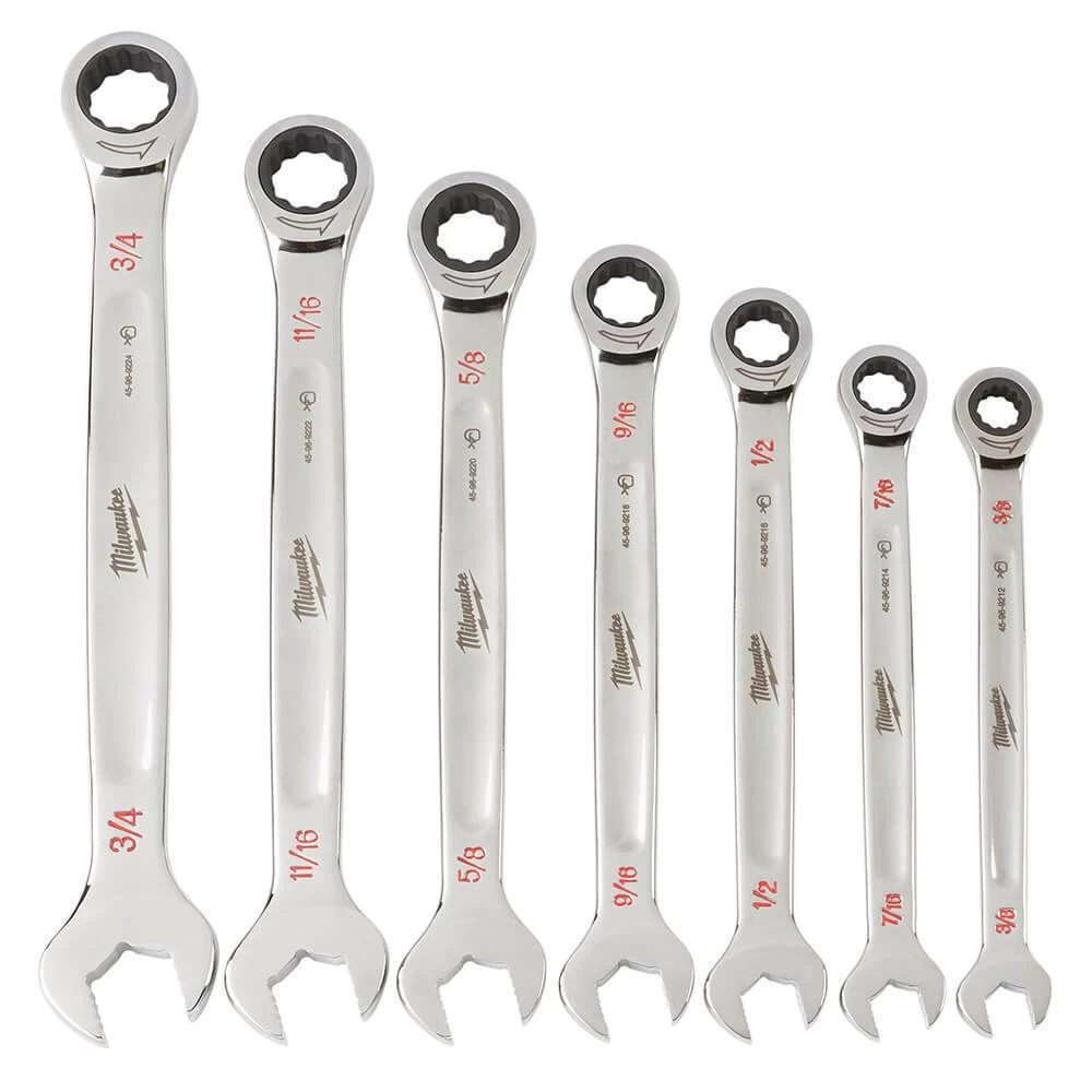 - Milwaukee 3/8, 1/2, 9/16, 5/8, 11/16, 3/4, 7/16-Inch Ratcheting Combination Wrench – 48-22-9406