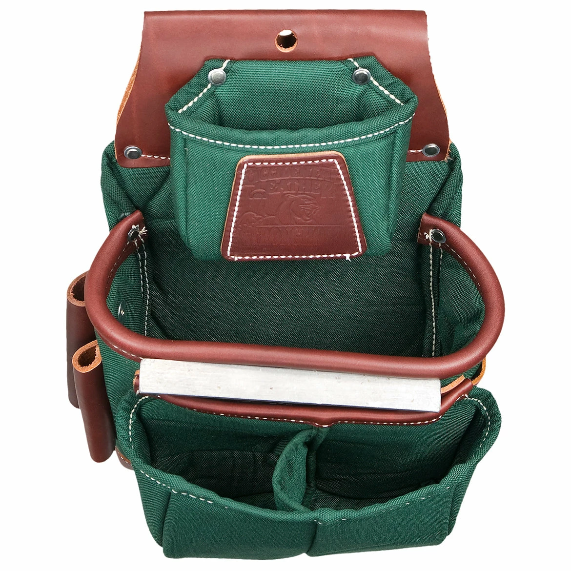- Left Handed Fastener Bags hold the tools and fasteners most often accessed with the right hand (nail sets, tri-square, cat’s paw, driver bits, angle square, etc.) and are worn on the right side of the body.