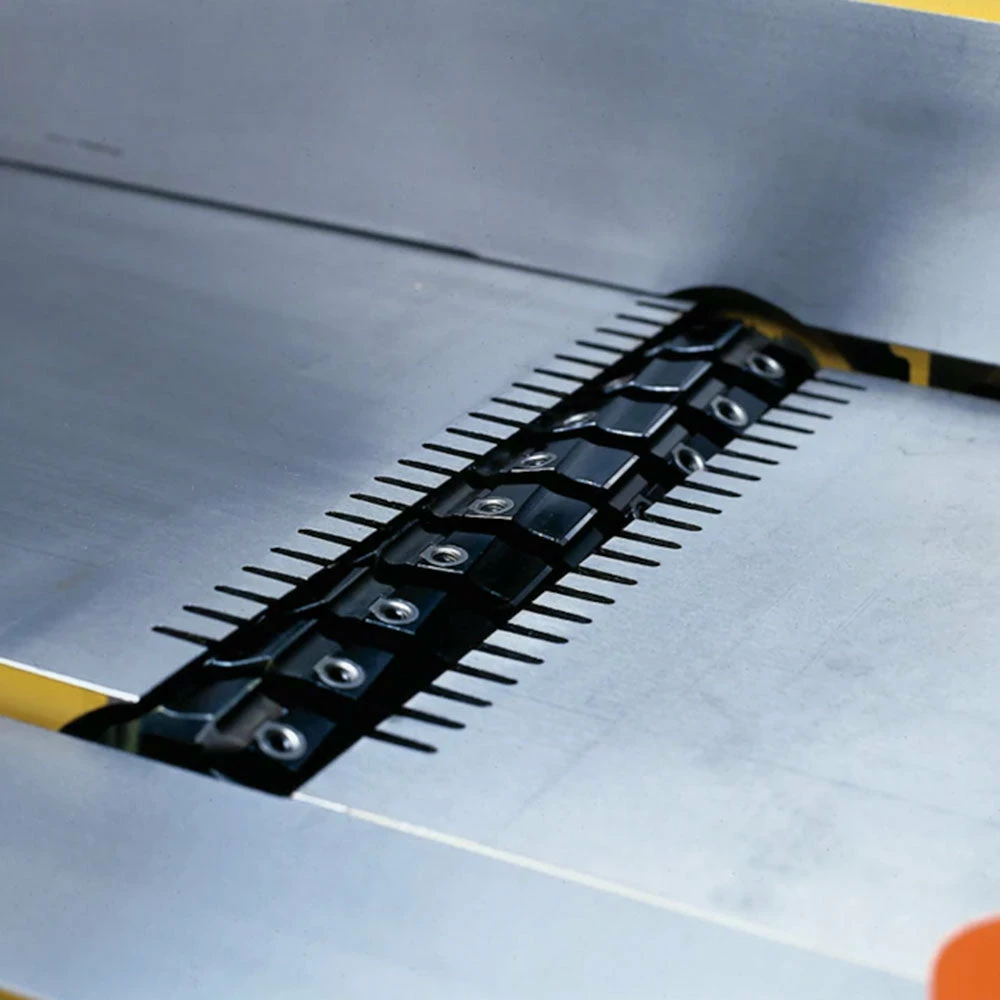 - Roller chain and sprocket design provide positive feeding for all types of materials