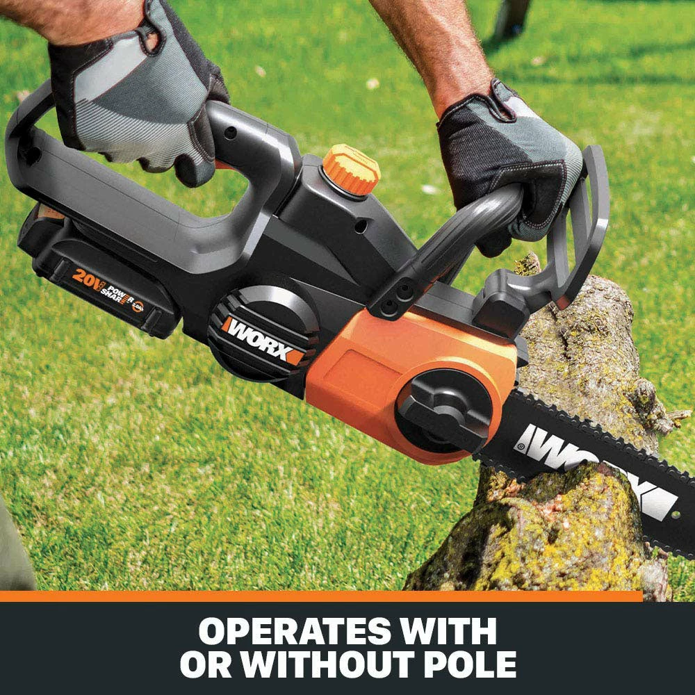 - Worx 10″ Lithium-Ion Cordless Pole/Chain Saw w/ Auto-Tension – WG323